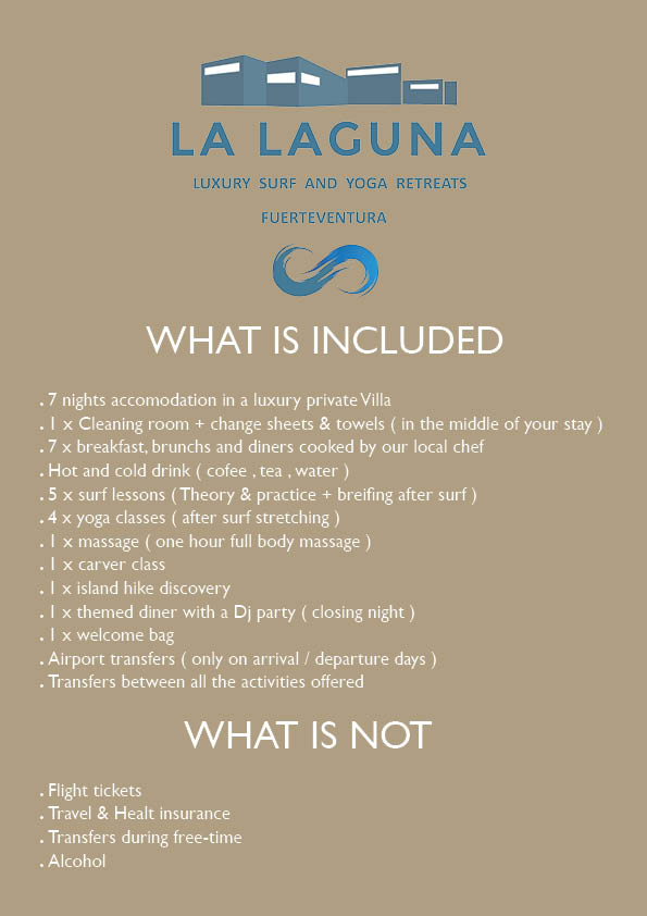 Wir freuen uns, die erste Ausgabe eines wunderbaren Surf- und Yoga-Retreats in der luxuriösen Villa LA LAGUNA in Lajares zu starten. Villa mit hohem Standard, Vollpension mit persönlichem Koch, Yoga- und Surfunterricht bei den besten Anbietern. Ein perfekter Urlaub, um vom Alltag abzuschalten 🙂