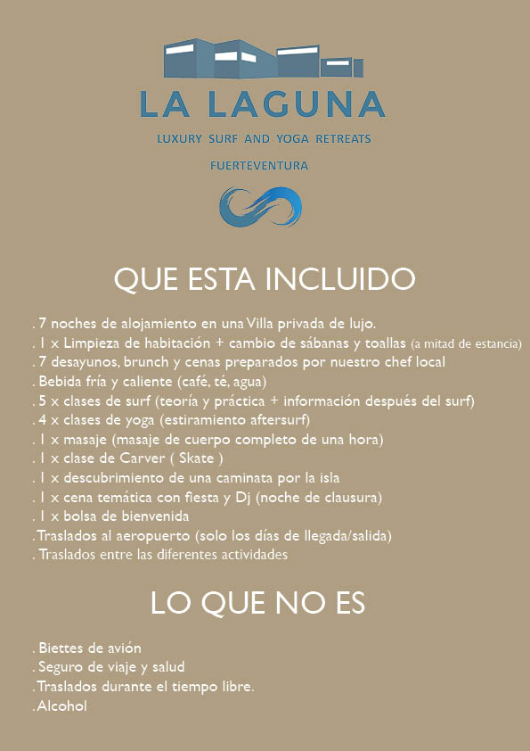 Estamos encantados de lanzar la primera edición de un maravilloso retiro de surf y yoga en la lujosa villa de LA LAGUNA en Lajares. Villa de alto estándar, pensión completa con chef personal, clases de yoga y surf con los mejores proveedores. Unas vacaciones perfectas para desconectar de la vida cotidiana 🙂
